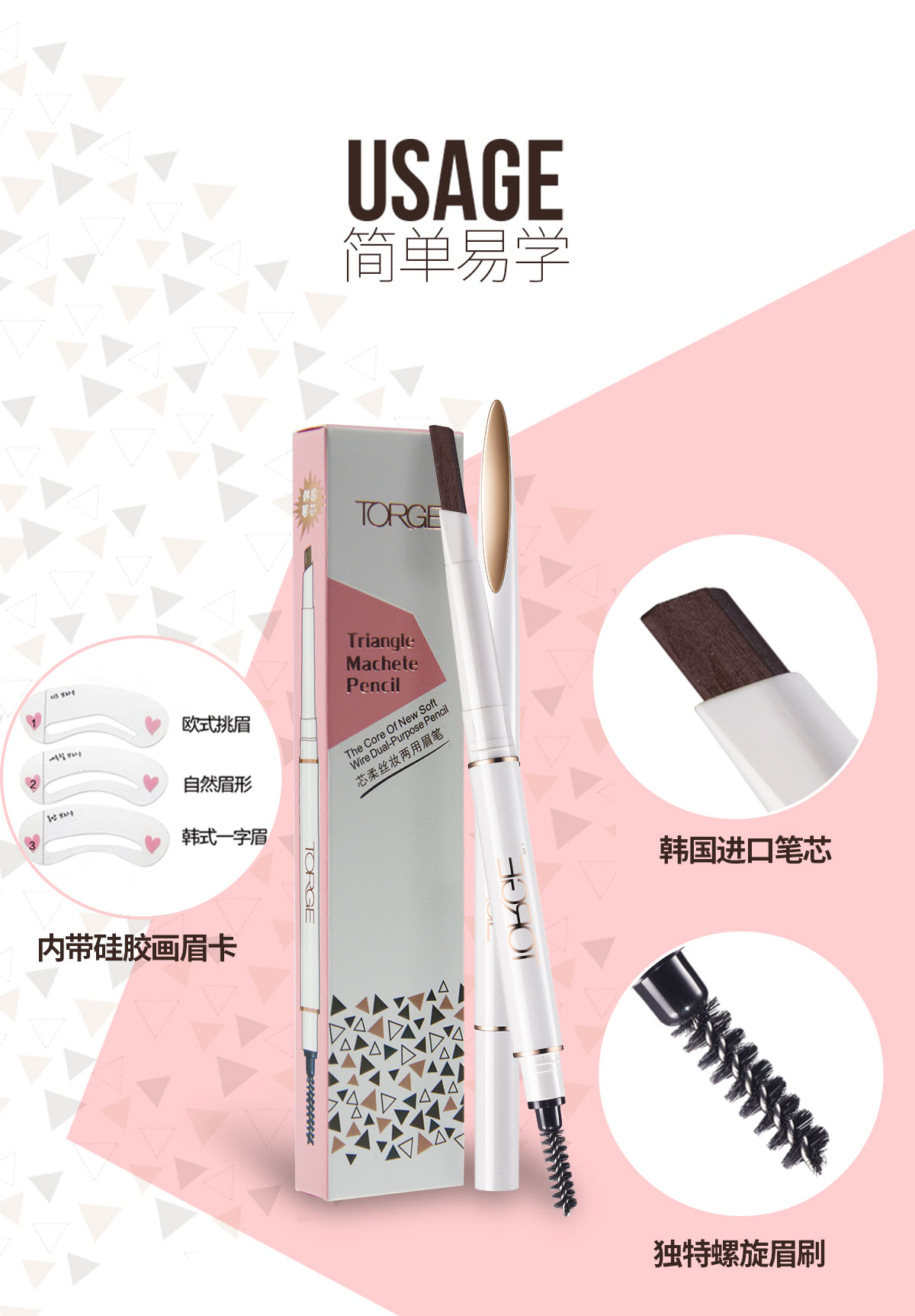 TORGE core soft silk makeup triangle eyebrow pen